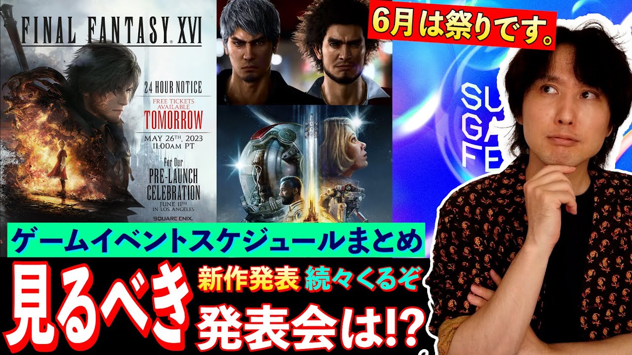 6月はSummer Game Festをはじめ、様々なゲームイベントが行われます!ファイナルファンタジー16のローンチイベントや新作ゲーム発表会まで!PS5の新作ゲームやスイッチのゲーム発表なんかもあるかな!?