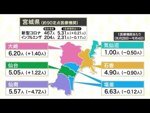Share Facebook Twitter Pinterest LinkedIn 先週、宮城県内で確認された新型コロナウイルスの新規感染者数は、1医療機関あたり「5.31人」で、3週連続で増加しています。 県によりますと5月29日から6月4日までの1週間で、県内およそ90の医療機関で確認された新型コロナの感染者数は467人で、1医療機関あたり5.31人となりました。前の週より0.21人増え、3週連続の増加となっています。 保健所別では、塩釜保健所管内で6.63人。大崎保健所管内で6.2人。仙南保健所管内で5.57人。石巻保健所管内で4.9人などとなっています。 コロナ新型ウイルス感染拡大で