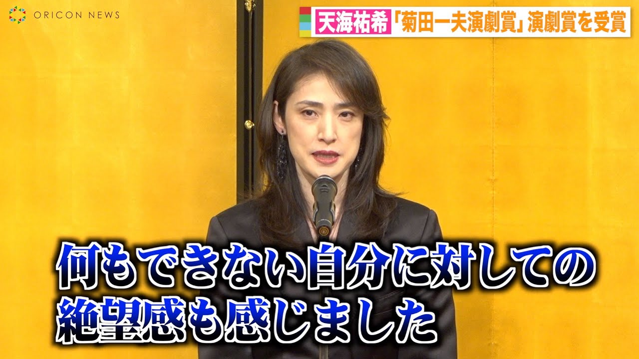 俳優の天海祐希(55)が、優れた大衆演劇を表彰する『第48回菊田一夫演劇賞』の演劇賞を受賞し7日、都内で行われた授賞式に出席した。