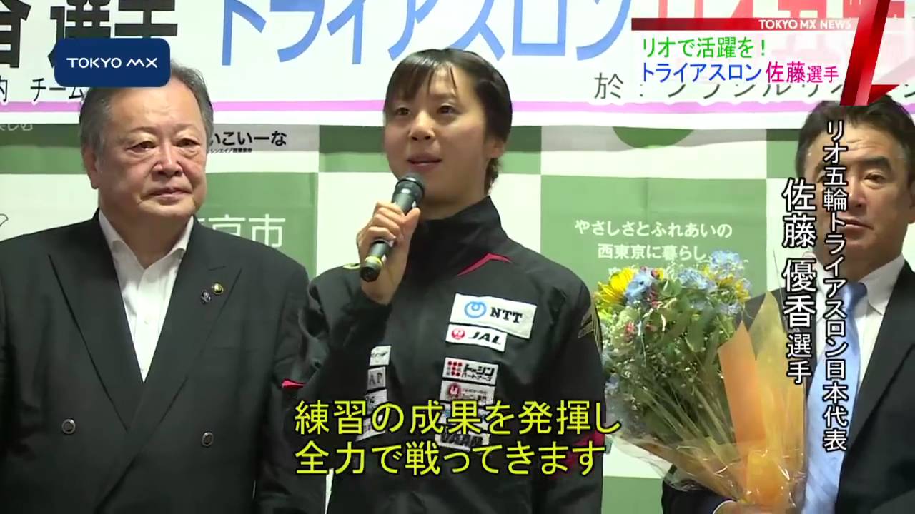 リオデジャネイロオリンピックにトライアスロンの日本代表として出場する佐藤優香選手がきょう、練習拠点だった西東京市を訪れ、集まった市民に大会に向けた意気込みを語りました。