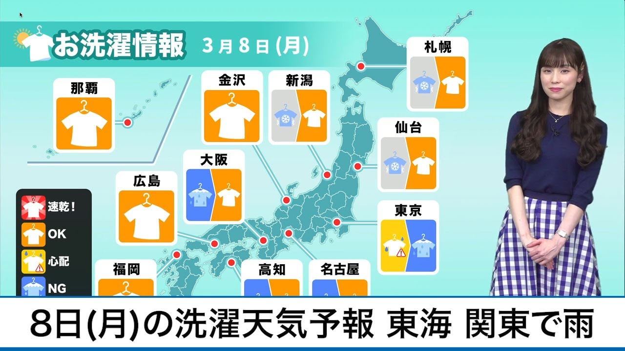 明日8日(月)は関東 東海など太平洋側では雨が降りやすくなります。