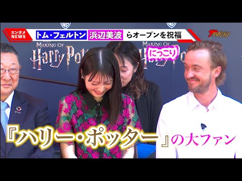 俳優のトム・フェルトン、浜辺美波、声優の小野賢章が6月16日に都内で開催された『ワーナー ブラザース スタジオツアー東京 – メイキング・オブ・ハリー・ポッター』オープニング・セレモニーに出席。