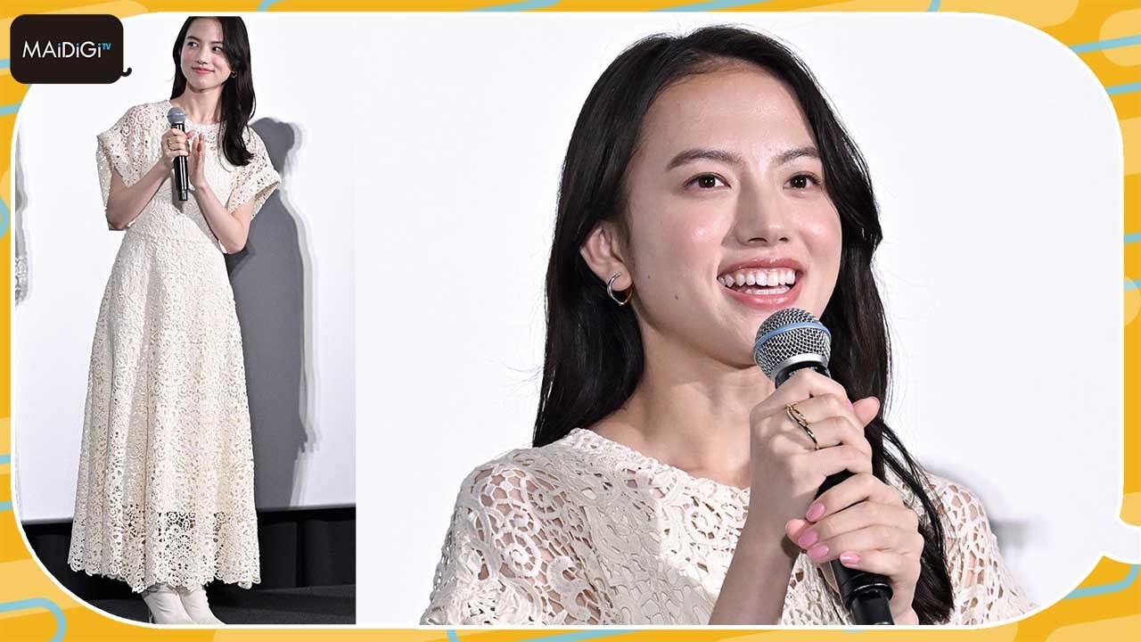 俳優の清原果耶さんが6月22日、東京都内で行われた映画「1秒先の彼」(山下敦弘監督、7月7日公開)のプレミア舞台あいさつに、透け感のある白系の総レースワンピで出席した。ワンピースは広がった袖が特徴的。ピンヒールのショートブーツを履き、2本の指につけるダブルフィンガーリングを着けて、品良くまとめた大人っぽいコーディネートだった。