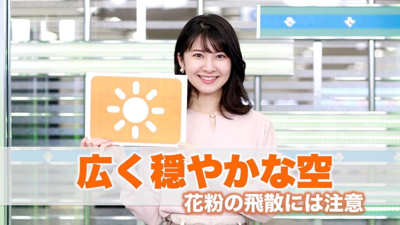 高気圧が北日本を通過し広く日差しの届く所が多くなりますが、関東や東海は湿った空気の影響で雲が広がりスッキリしない空です。ただ、昨日より気温が上がり、寒さは和らぎそうです。雨上がりで花粉が多く飛散するおそれがあるため、対策は万全に行ってください。北海道の日本海沿岸部では次第に風が強まり、夜遅くには急な強い雪や雨の可能性があります。