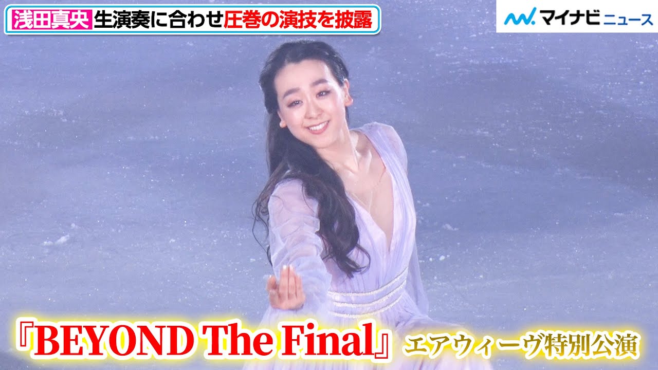 フィギュアスケーターの浅田真央、ヴァイオリニストの三浦文彰、ピアニストの三浦舞夏が16日、アイスショー『BEYOND The Final』のエアウィーヴ特別公演に出演。『愛の夢』の生演奏に合わせ、フィギュアスケートの壮大な演技が繰り広げられた。