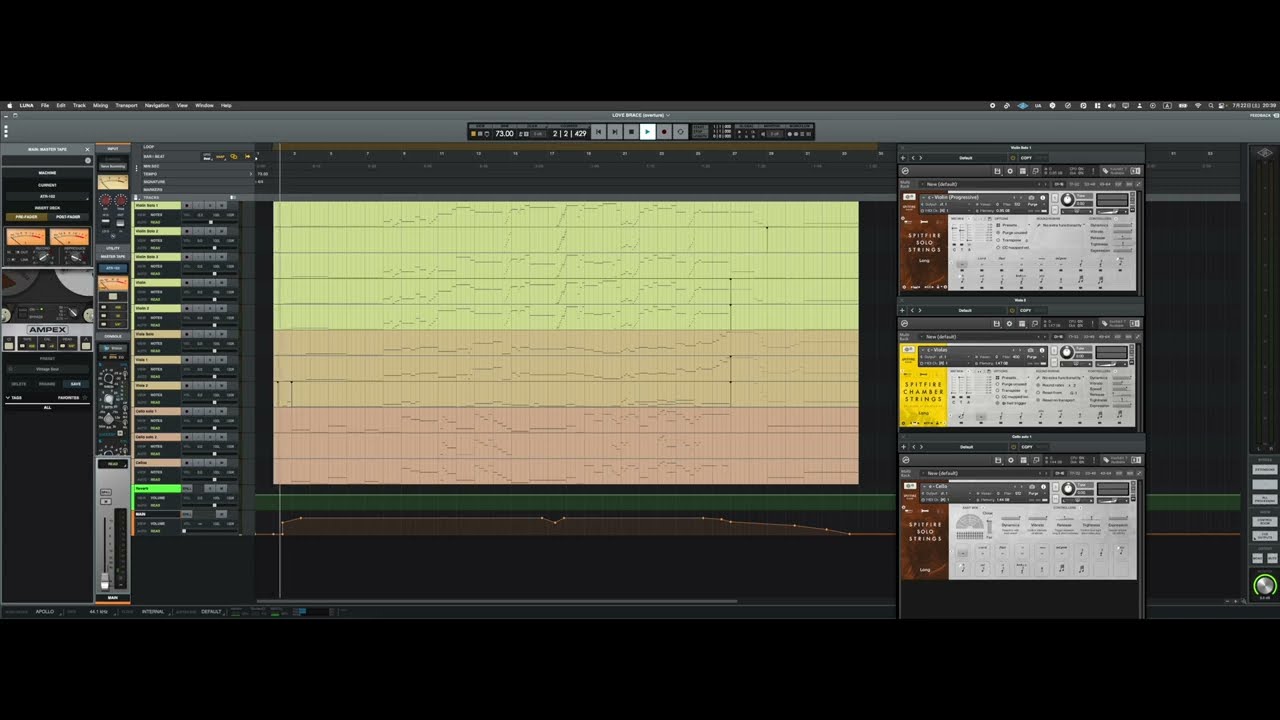 使用音源: #spitfire 『SOLO STRINGS』『CHAMBERSTRINGS』 DAW:Universal Audio LUNA #華原朋美 のアルバム『LOVE BRACE』から『overture』を打ち込んでみました。ストリングス音源打ち込みの練習用です。オーディオ化していない、MIDIの状態でエクスポート。 MIDIチャンネルには、API Vision Consoleのみインサート。 マスタートラックにNeveのサミング、ATR-102のテープを使用。#dtm *LunaCHAMBER STRINGSDTMLOVE BRACEOvertureSOLO STRINGSSpitfire華原朋美