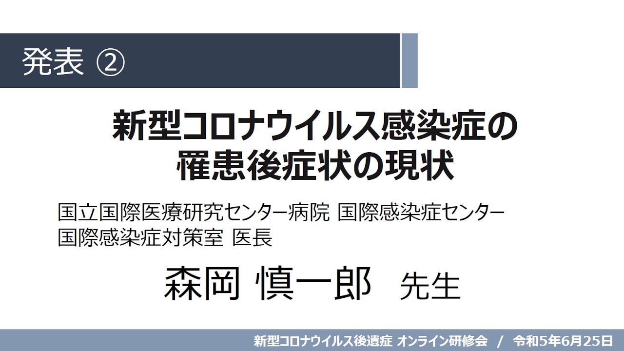 新型コロナ後遺症オンライン研修会「新型コロナウイルス感染症の罹患後症状の現状」森岡 慎一郎先生(令和5年6月25日)