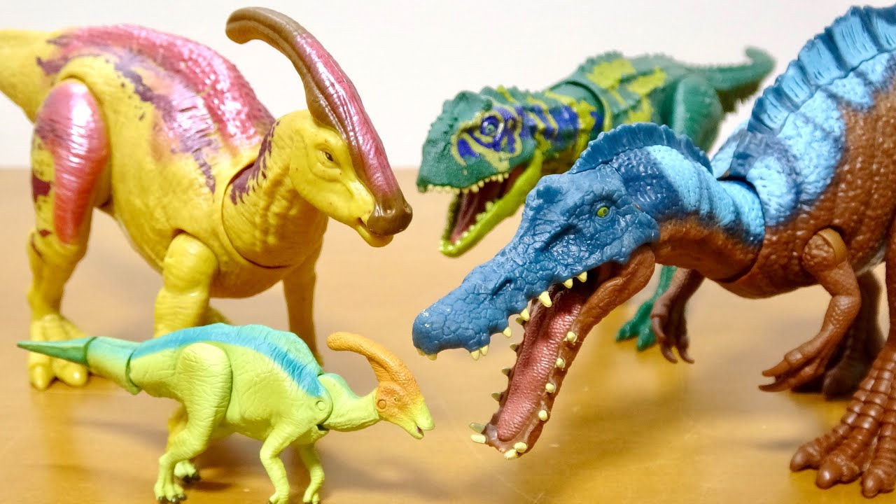 ジュラシックワールド サバイバル・キャンプ 尻尾を動かすと迫力のサウンドがなる 吠える恐竜 パラサウロロフス マジュンガサウルス イリタトル