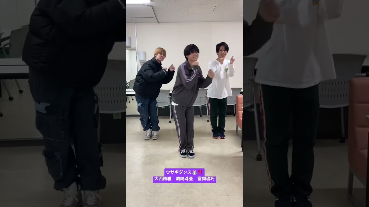 ウサギダンス🐰‼風雅だけ終始真顔で踊っててさすがすぎて笑える😹そういうところが大好きなんです☺️💜#関西ジャニーズjr #関ジュ #lilかんさい #大西風雅 #嶋﨑斗亜 #當間琉巧