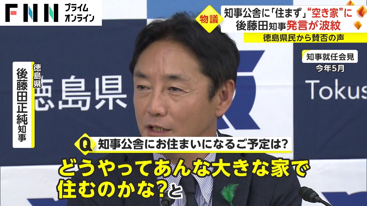 徳島県・後藤田知事「維持費も結構かかる。その中で知事公舎というものが本当に必要なのかと、県民目線からご意見を賜りたい」