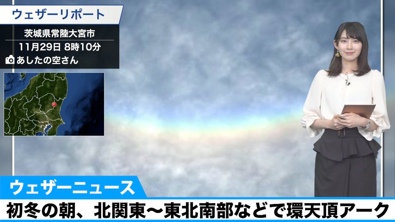 Share Facebook Twitter Pinterest LinkedIn 今日29日(日)は冬型の気圧配置が少し弱まっています。北信越から関東北部、東北南部にかけては上空高い所に薄雲がかかり、鮮やかな環天頂アークが出現しました。 2020Casterウェザーニュースキャスターゲリラ豪雨ゲリラ雷雨ニュース予報北日本台風台風情報地震大雨天気天気予報情報東日本気象気象予報士減災真・鮫島事件西日本防災