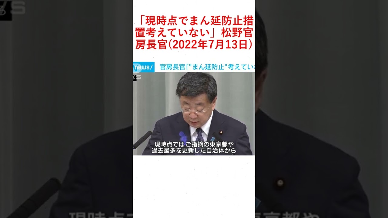 現時点でまん延防止措置考えていない」松野官房長官(2022年7月13日)