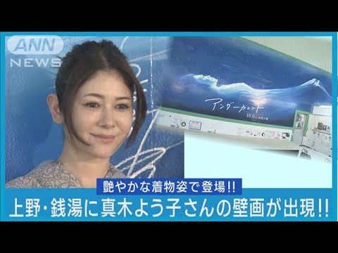 女優・真木よう子が富士山と共に美しく描かれた巨大な壁画が、上野・寿湯に出現!! 銭湯ペンキ絵師の田中みずき氏によって描かれた壁画は、真木よう子の主演映画「アンダーカレント」のシンボルとして創作された。 映画の公開を前に「アンダーカレント湯オープン記念イベント」が開催され、真木と田中氏の二人が上野・寿湯に登場!!巨大壁画をバックに映画「アンダーカレント」への熱い想いを語った。 [テレ朝news] https://news.tv-asahi.co.jp owned mediaprovidedテレビ朝日ニュースニュース企画文化情報本編のみ真木よう子花里ゆいな