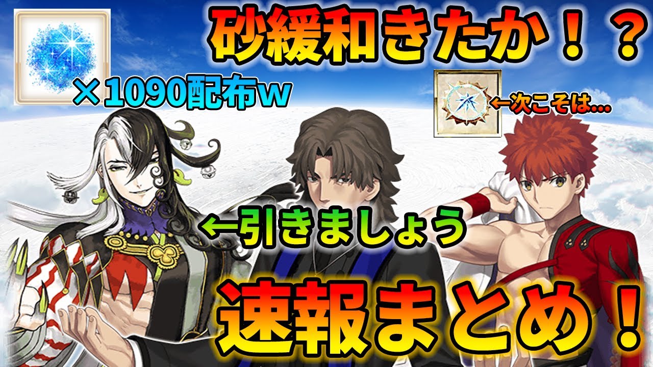 【FGO】砂大量配布!緩和きたか!?今日の速報まとめ!|言峰村正リンボは誰を引くべき?