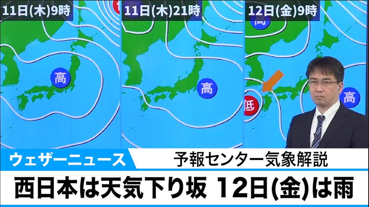 予報センターより次の雨のタイミングを解説します。 穏やかな天気はあまり続かず、西日本ではだんだんと空の高いところから雲が増えてくる見込みです。飛行機雲やハロ(日暈)、なみなみとした波状雲など、天気下り坂を示唆すると言われる現象が見られる可能性があります。 雨雲レーダー https://weathernews.jp/onebox/radar/?fm=youtubeピンポイント天気予報 https://weathernews.jp/onebox/gps.html最新天気をリアルタイム解説 2021Casterウェザーニュースキャスターゲリラ豪雨ゲリラ雷雨ニュース乾燥予報停電北日本台風台風情報地震大雨大雪天気天気予報天気痛情報暴風東日本気象気象予報士洗濯減災西日本防災