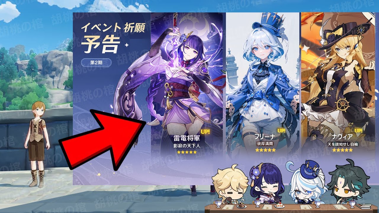 まず、4.2の主要イベントはダンスパーティーと言われており、フリーナはすべての国に招待状を送っています。イナズマから招待されたキャラはアヤトとアヤカです。スメールからはコレイとセノ、そしてモンドはこの動画の制作時点では不明です。現在の4.2のガチャと比較すると、フリーナ、セノ、ビャクジツ、アヤトのいずれも主要イベントに含まれていることがわかります。