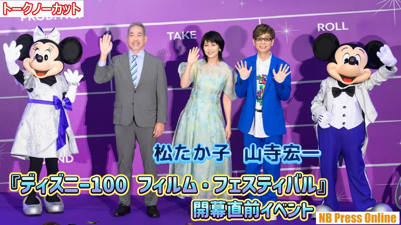2023年9月24日、新宿ピカデリーにて、『ディズニー100 フィルム・フェスティバル』開幕直前イベントが行われ、ウォルト・ディズニー・ジャパン株式会社バイスプレジデント&ゼネラルマネージャー・目黒敦氏に加えて、ゲストとして、ミッキーマウス&ミニーマウス、そして、ディズニーアニメで日本語吹き替えを務めてきた松たか子と山寺宏一も登壇。ディズニー作品の魅力や今後のディズニー作品に期待することなどを明かした。
