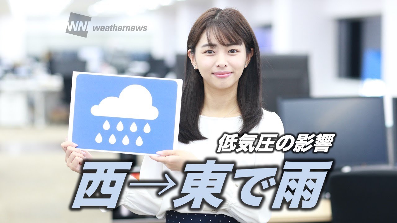 低気圧が東シナ海から西日本を進みます。この影響で西日本・東日本では広く雨が降ります。西から雨のエリアが拡大。西日本や東海は日中、雨が降り出します。関東や北陸も夜は本降りの雨になるので、雨具をお持ちください。北日本は、広く日差しが届きます。朝晩と昼間との体感差が大きいので、体調をくずさないようお気を付けください。