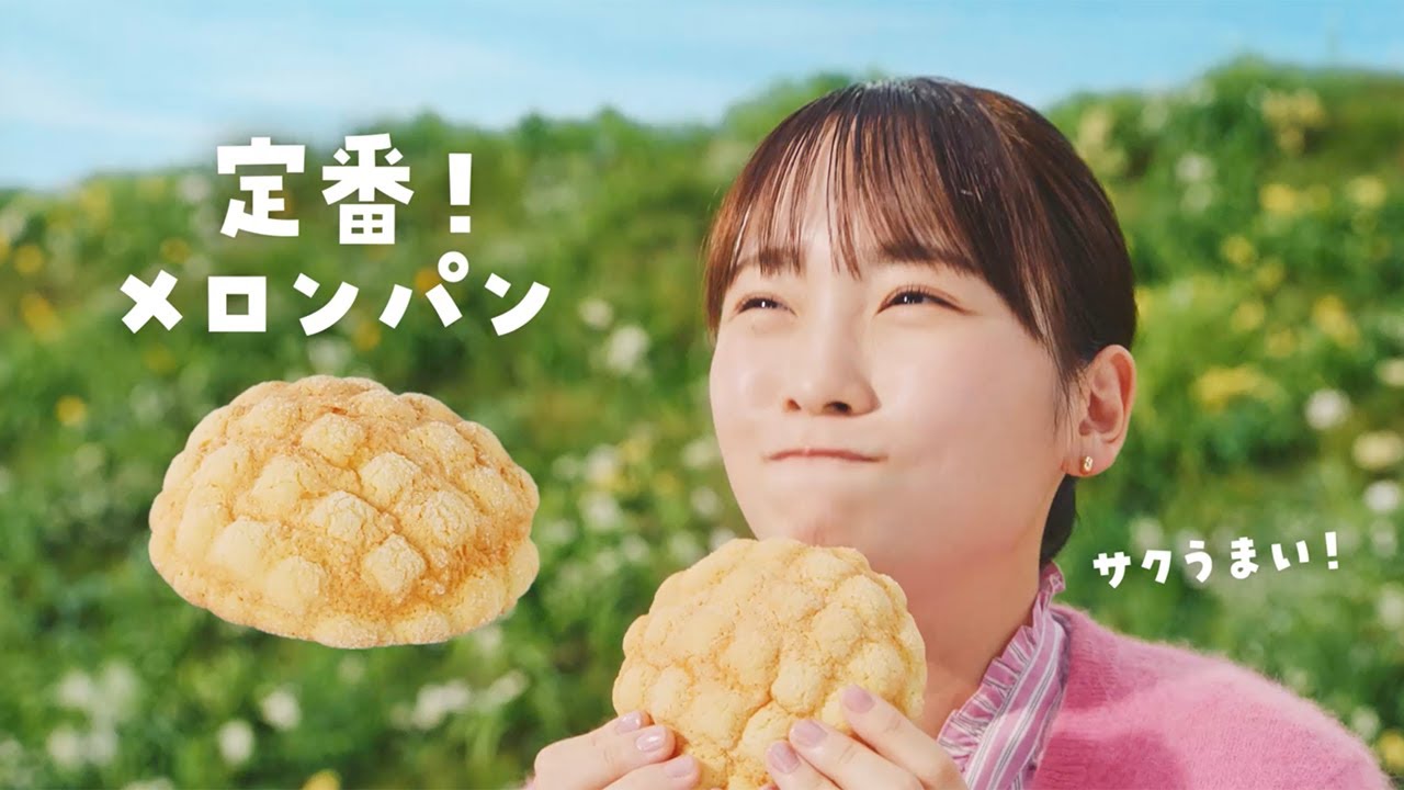 テレビCMでは、松山“店長”とパンの妖精たちが、川栄さんに定番パンや新作の塩メロンパンを紹介。土手の上からパン屋のコスチュームを着た松山店長とパンの妖精たちが、「定番パパパンパンパーン!」と音楽に合わせて登場する。