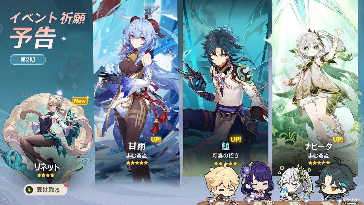 原神4.4では、ゲーム初の3人ピックアップが登場すると言われており、前半ではしんくんとショウが登場すると言われています。