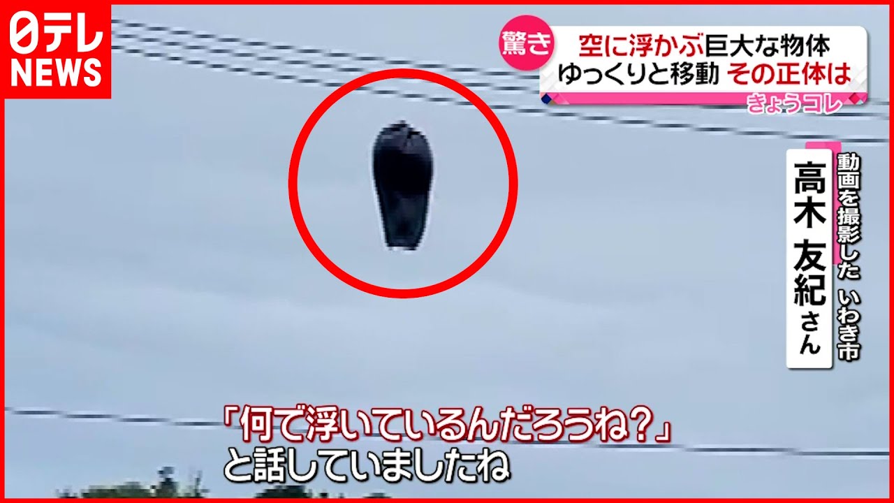 福島県いわき市の住宅地で、人間の数倍もある“巨大な黒い物体”が空に浮き、ゆっくりと移動している映像が撮影されました。その意外な正体とは?