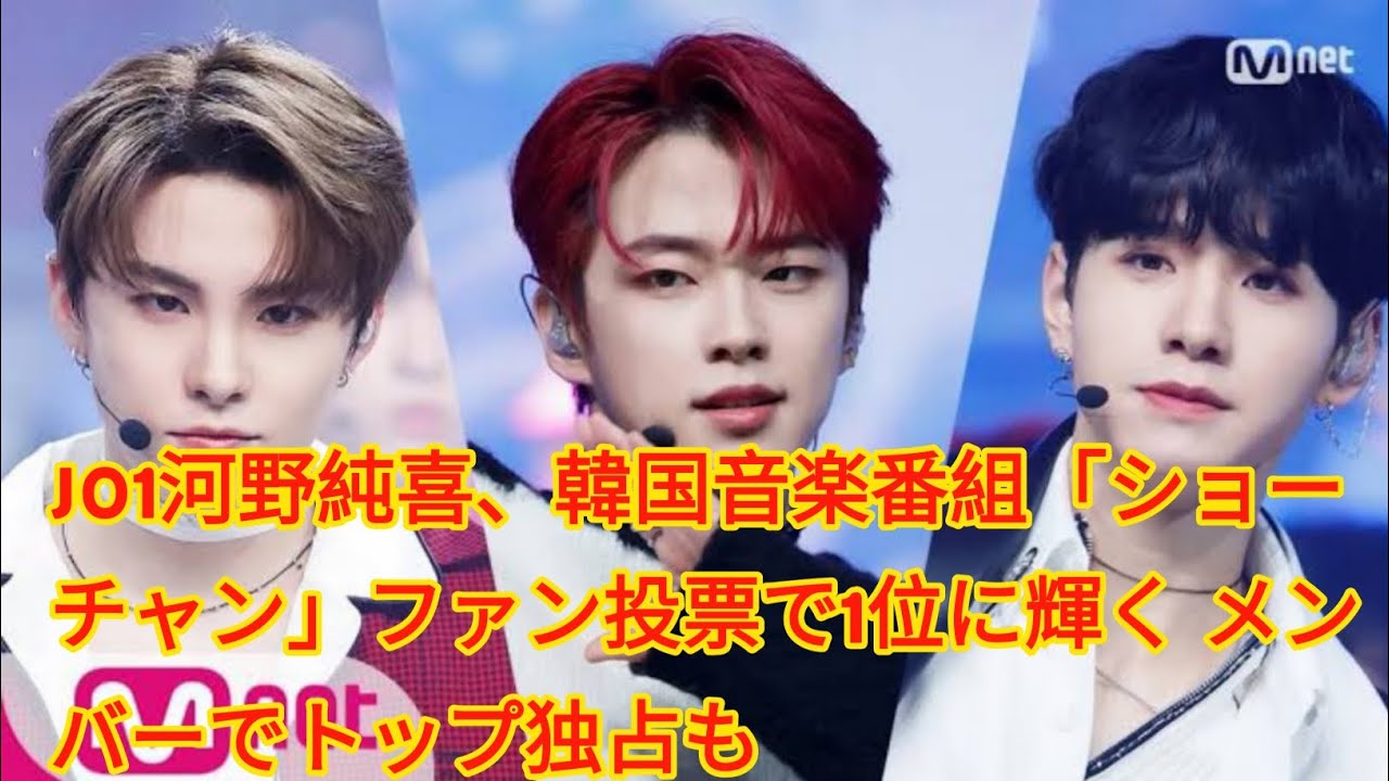 JO1河野純喜、韓国音楽番組「ショーチャン」ファン投票で1位に輝く メンバーでトップ独占も