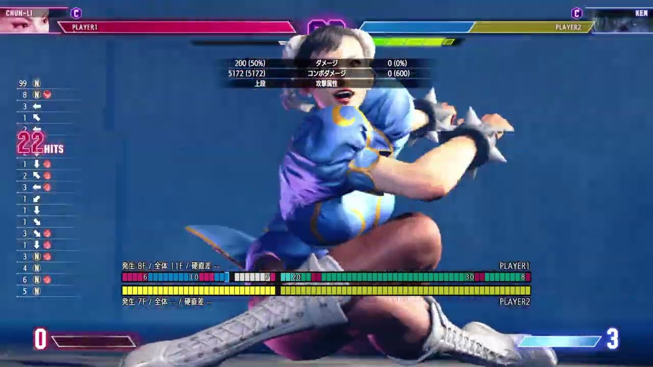 ※画面端 強P(パニカン)▸行雲流水▸仙風▸DR発剄▸行雲流水▸仙風▸DR中P▸発剄▸行雲流水▸天空脚▸鷹爪脚▸鷹爪脚▸鷹嘴連拳▸蒼天乱華 5862ダメージ