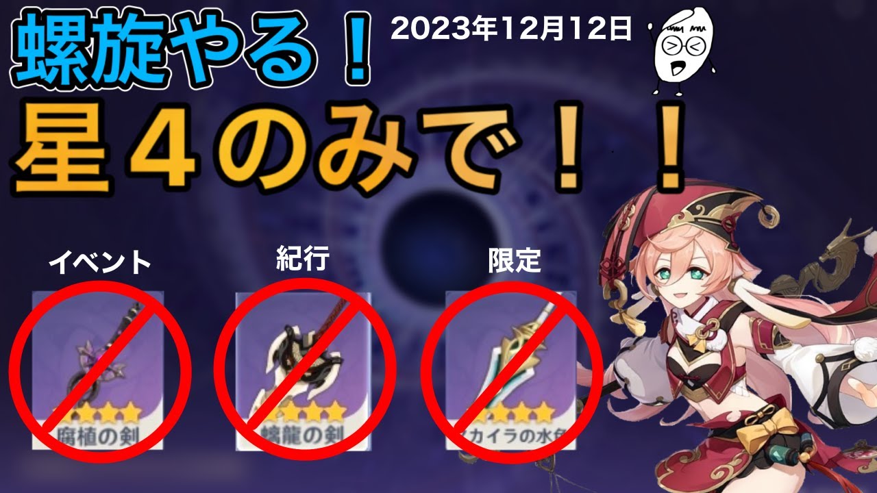 【縛り内容】 ①星4キャラのみ使用②イベントと紀行.限定武器を除いた星4武器のみ使用【注意事項】 この動画は星4キャラ武器のみ使用の 螺旋12層攻略になります。 (イベントや紀行、限定武器は使用不可) ただし、キャラレベルの育成を 最大でもLv88で止めてる為、 火力は控えめとなっています。 (特に感電や激化パーティなどはLv90推奨です)~質問やコメントはお気軽にどうぞ~ #PS5LivePlayStation 5Sony Interactive Entertainment原神原神ゲーム攻略