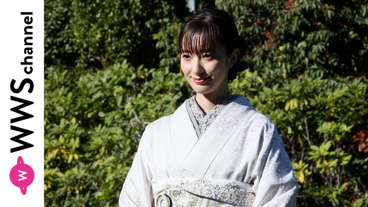 宮本茉由はグレーと白の美しい晴れ着姿で登場し、