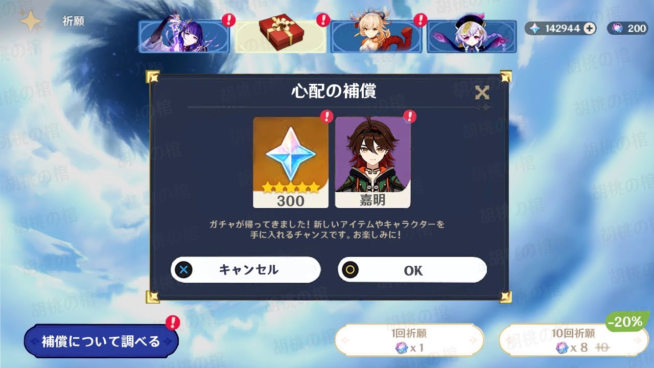 放浪者、水神、ビャクジュツ、フォンテーヌ、ガチャ、ココミ、万葉、螺旋、リオセスリ、ヌヴィレット、ナヴィア、クロリンデ 、フリーナ、イェラン、リネ、鍾離、タルタリア、初心者のために原石をを準備しましょう!