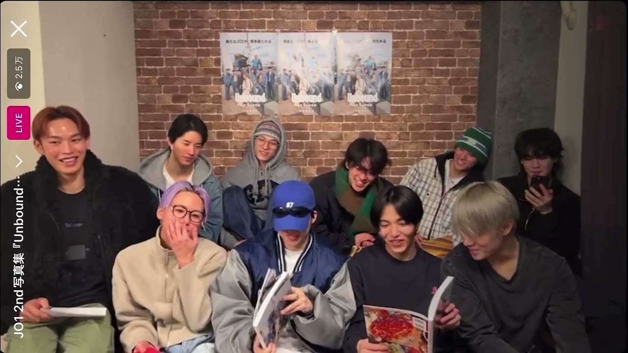 Share Facebook Twitter Pinterest LinkedIn 20240124 JO1 Instalive 𝟮𝗻𝗱 写真集「Unbound」発売記念インスタライブ 與那城奨 川尻蓮 河野純喜 佐藤景瑚 川西拓実 木全翔也 大平祥生 金城碧海 鶴房汐恩 白岩瑠姫 体調不良のためお休み 主は24日に届きますドゥグンドゥグン🫶 JO1金城碧海