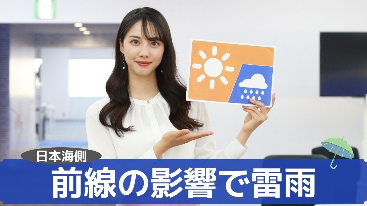 前線が通過する影響で、日本海側の各地で雨が降ります。前線通過時は強雨や雷雨・突風・アラレを伴う恐れがあるため注意が必要です。外出時に日差しがあっても雨具を忘れずにお持ちください。