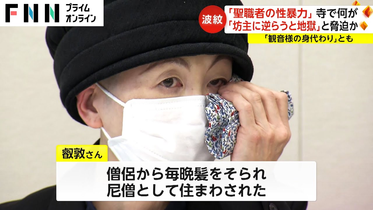 31日午前、東京・千代田区で会見を行った叡敦さん(50代)は、四国にある寺に尼僧として住まわされ、2009年からおよそ14年間にわたり、60代の僧侶から繰り返し性的暴行を受けたと主張している。