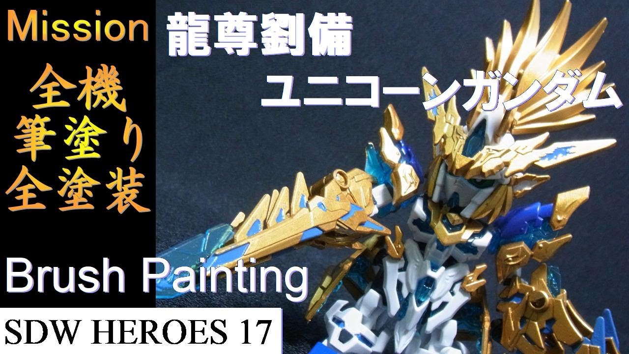 SDガンダム、SDW HEROESを全機筆塗りします。今回は龍尊劉備ユニコーンガンダムです。ノーマル版から髪が新規パーツに置き換えられて腕武器が追加されています。