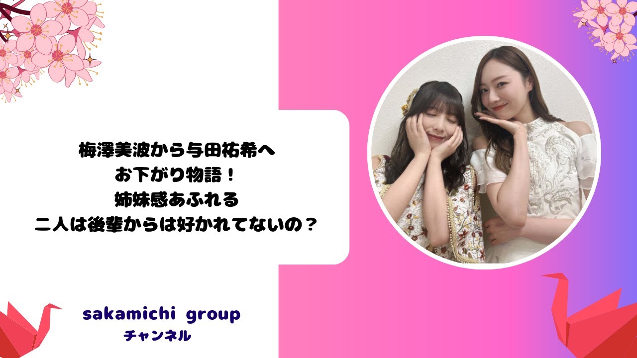 Share Facebook Twitter Pinterest LinkedIn 乃木坂46 同期の梅澤美波キャプテンと与田祐希 仲の良いコンビ! 梅澤美波↓↓ 与田祐希 卒業が心配される↓↓ 一部、画像を引用 著作権・肖像権等は全て 各権利所有者様に帰属いたします。 万が一にも動画の内容に問題がある場合、各権利所有者様ご本人から ご連絡を頂けましたら速やかに対応致します。 #梅澤美波 #与田祐希 #乃木坂46 与田祐希乃木坂46坂道グループ梅澤美波