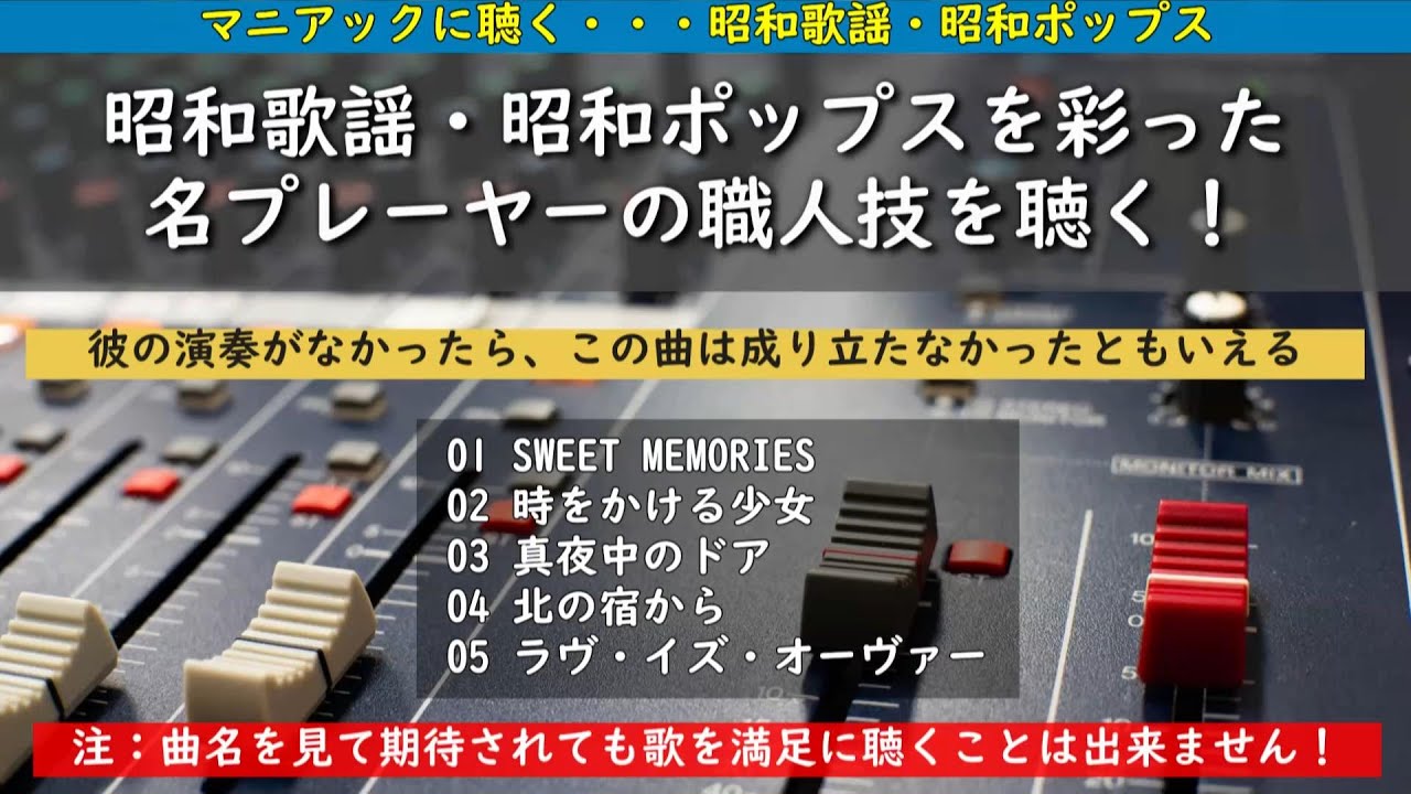 ご視聴いただきありがとうございます。今回はマニアックに聴く昭和歌謡・昭和ポップスということで、こんなん出しても見てくれる人が居るんかなあ?と思いながら出しています(笑)