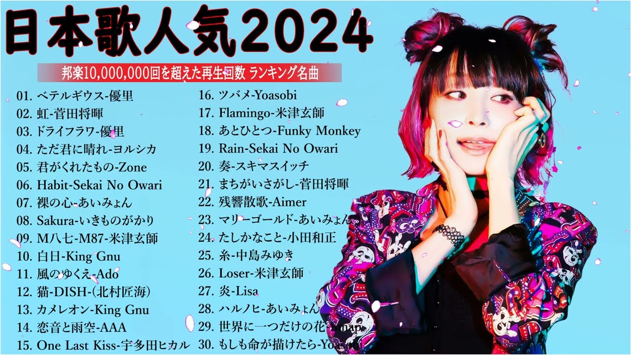 【広告なし】有名曲J-POPメドレー || 邦楽 ランキング 2024 🎶日本最高の歌メドレー || YOASOBI、優里、米津玄師 、あいみょん、宇多田ヒカル、LiSA、 ヨルシカ…NN.07