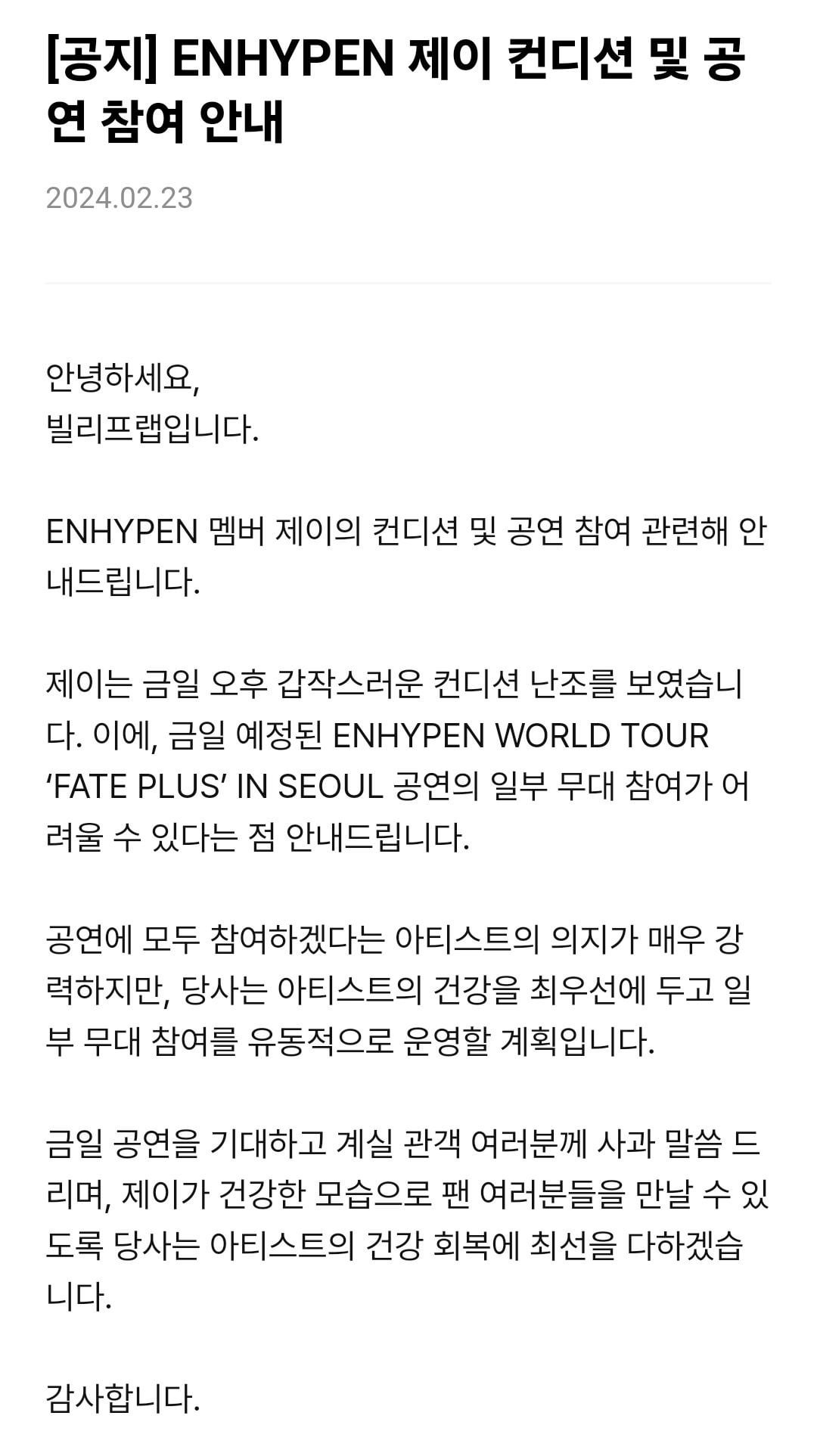 🔗[Source](https://weverse.io/enhypen/notice/17841) 英語写真翻訳: [0215jaeyun](https://twitter.com/0215jaeyun/status/1760971846218838179?t=rlJ2qReIenZpO45pdjJAUw&s=19) Twitter