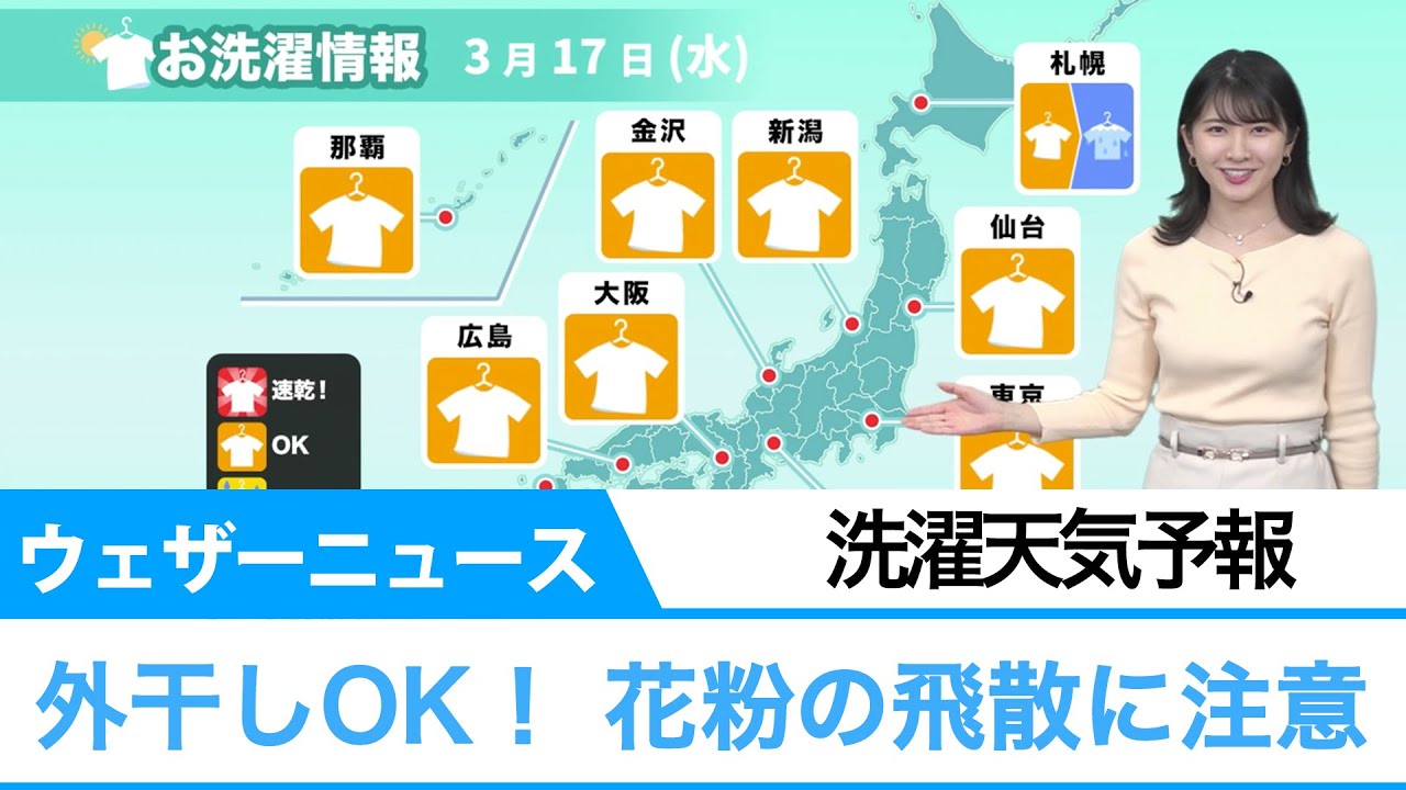 今日は広い範囲で洗濯物の外干しOKです。ただし、引き続き花粉の飛散には注意が必要です。 2021Casterウェザーニュースキャスターゲリラ豪雨ゲリラ雷雨ニュース乾燥予報停電北日本台風台風情報地震大雨大雪天気天気予報天気痛情報暴風東日本気象気象予報士洗濯減災西日本防災