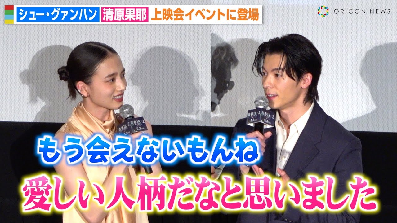 Share Facebook Twitter Pinterest LinkedIn 俳優の清原果耶、台湾の人気俳優シュー・グァンハン、藤井道人監督が27日、都内で行われた日台合作映画『青春18×2 君へと続く道』(5月3日公開)の来日スペシャル上映会に登壇した。 #清原果耶 #シューグァンハン #許光漢 #青春18×2 #君へと続く道 douga3oriconオリコンオリコンニュース取材清原果耶