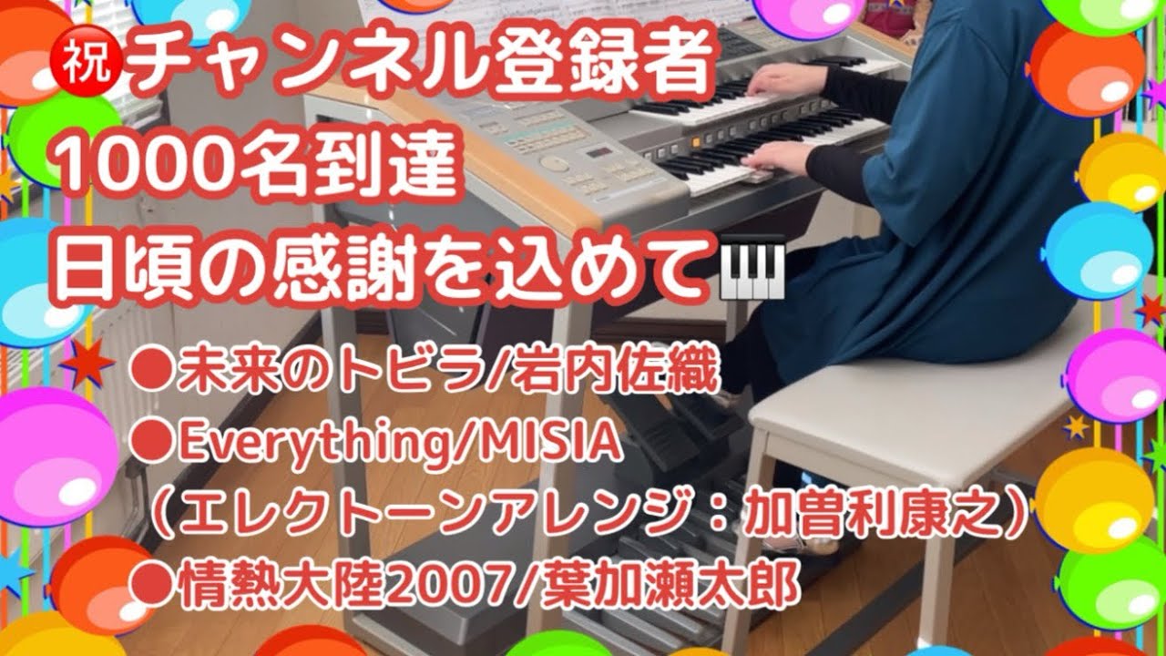 昨年の11月終わり頃、チャンネル登録者数800名を達成した頃から、今回の動画作成を意識し、選曲・演奏・撮影をしてきました。エレクトーンに携わっていない方でも楽しめ、ジャンルの偏りがない選曲を心がけました。動画の最後にはおまけもあります。