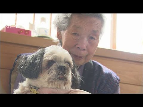 11年前の3月。自宅があった岩手県宮古市の田老地区を歩く赤沼タミさん(当時82歳)と雌のシーズーのバブ(当時12歳)。津波が自宅を飲み込んだ時、タミさんはバブに命を救われたといいます。