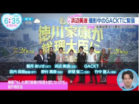 浜辺美波・撮影中のGACKTに緊張 映画「もしも徳川家康が総理大臣になったら」(東宝系)製作報告会に浜辺美波、GACKT、観月ありさ、野村萬斎、赤楚衛二、竹中直人、武内英樹監督が登場した。 GACKT明かす・赤楚衛二のキャラを勘違い 内閣官房長官・坂本龍馬を演じた赤楚衛二。 赤楚と初共演したGACKTが「衛二が日焼けしてる人ってずっと思っていた」とコメント。 メーキングの映像。 #King & Prince#なにわ男子7 MEN侍BTSDAYDAYHiHi JetsJO1mlbnews every.藤井貴彦niziuNスタSixTONESSnow ManTravis JapanZIPあさチャンイットイット!ゴゴスマサッカージャンクSPORTSスッキリダウンタウンノンストップバスケットボールはやドキひるおびヒルナンデスフィギュアスケートプロ野球プロ野球ニュースぽかぽかポップUP!ミヤネ屋めざまし 8めざましテレビラヴィット乃木坂46大谷翔平日向坂46櫻坂46浜辺美波競泳