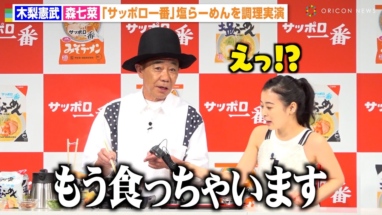 お笑いコンビ・とんねるずの木梨憲武、俳優の森七菜が18日、都内で行われたサンヨー食品『サッポロ一番』の新CM発表会に参加した。