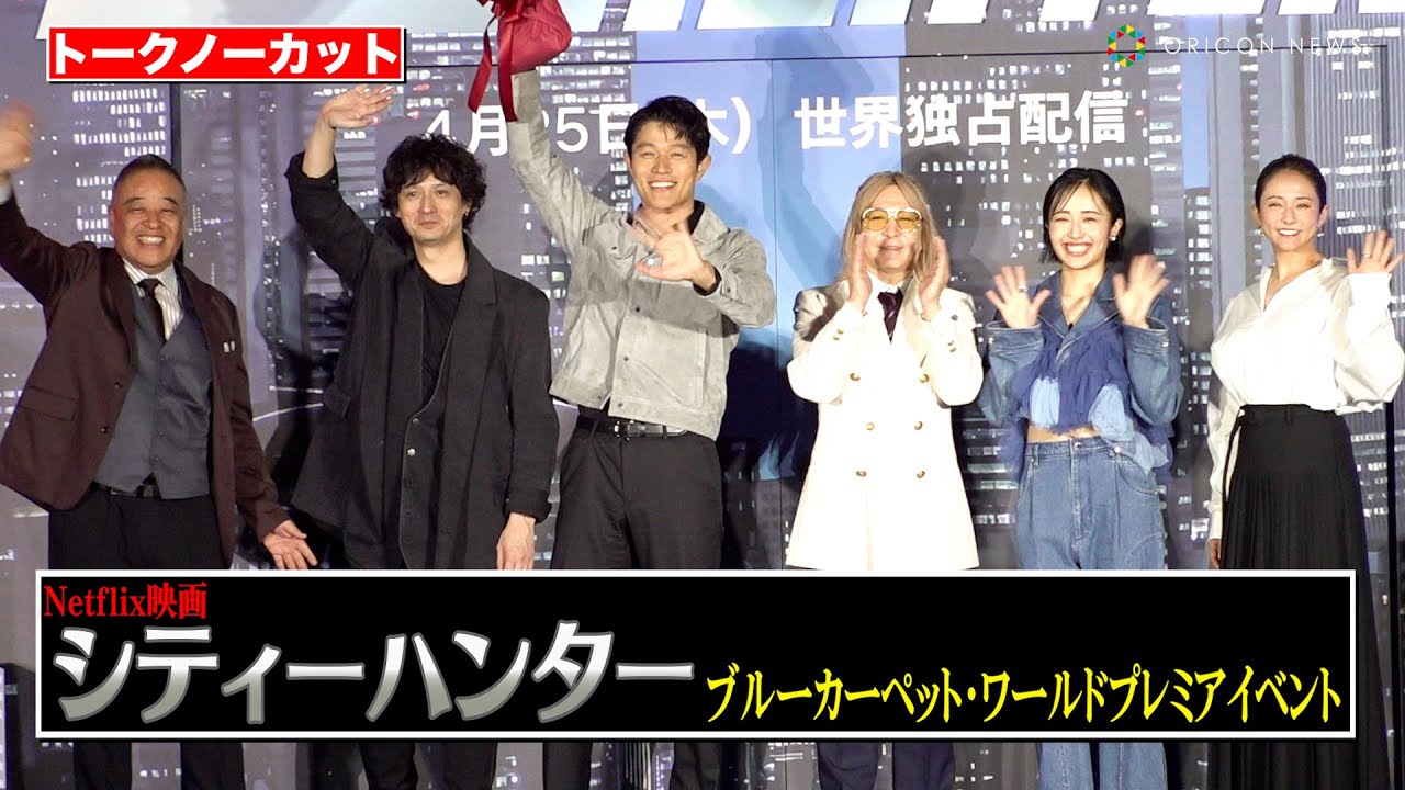 Netflix映画『シティーハンター』(25日配信開始)ブルーカーペット・ワールドプレミアイベントが23日、東京・新宿で行われ、主演の鈴木亮平のほか森田望智、安藤政信、木村文乃、佐藤祐市監督が登場した。さらに特別ゲストとしてエンディング曲「Get Wild Continual」を担当したTM NETWORKの小室哲哉がサプライズ登場。