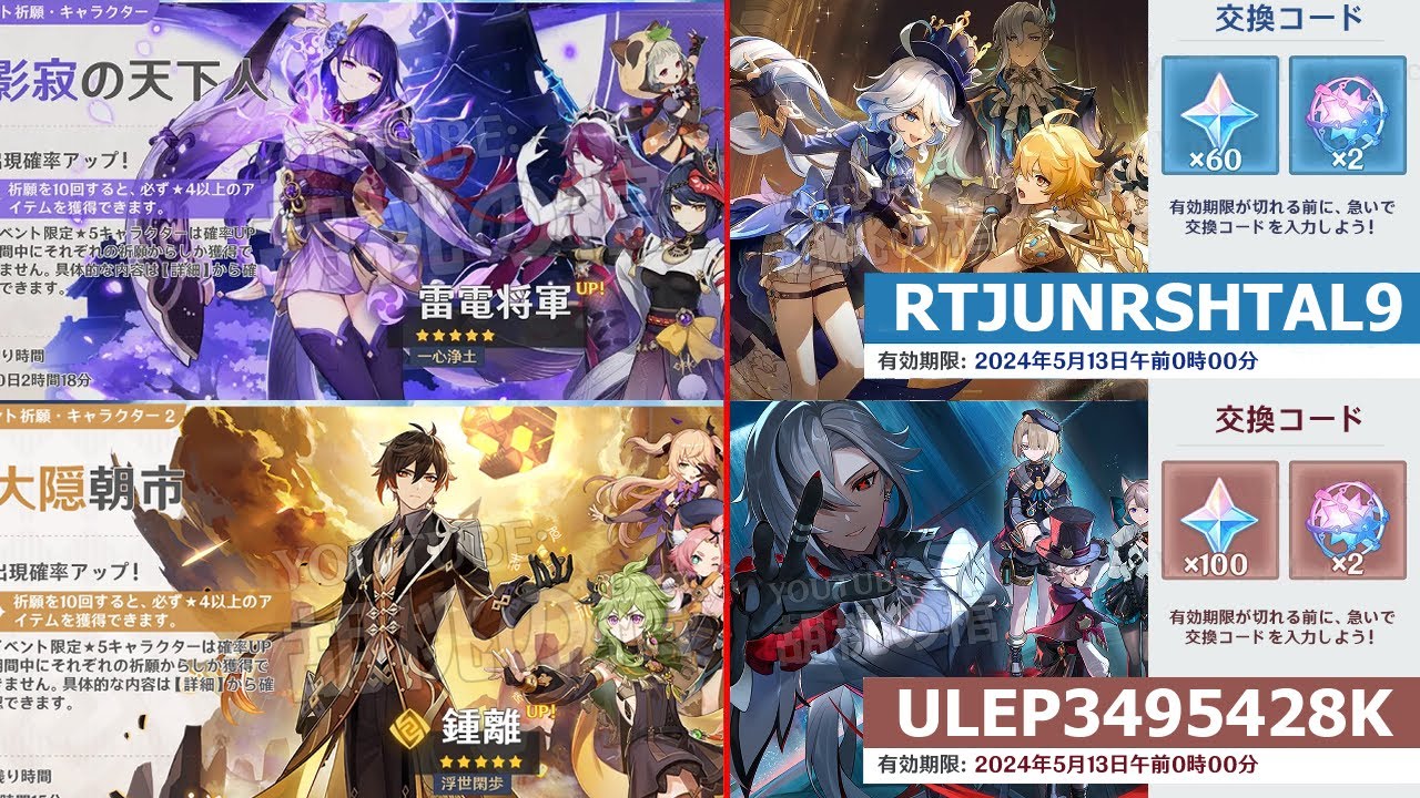 この動画では、今のアップデート4.6に関する7個の新しい交換コード、次のバージョンでの報酬の削減、そしてショウリと雷電将軍の復刻に関する情報について紹介します。