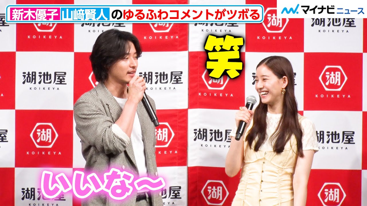 山崎賢人、新木優子が13日、『湖池屋 新戦略・新商品記者発表会』に登場。新商品の食べ比べや、トークセッションを行った。