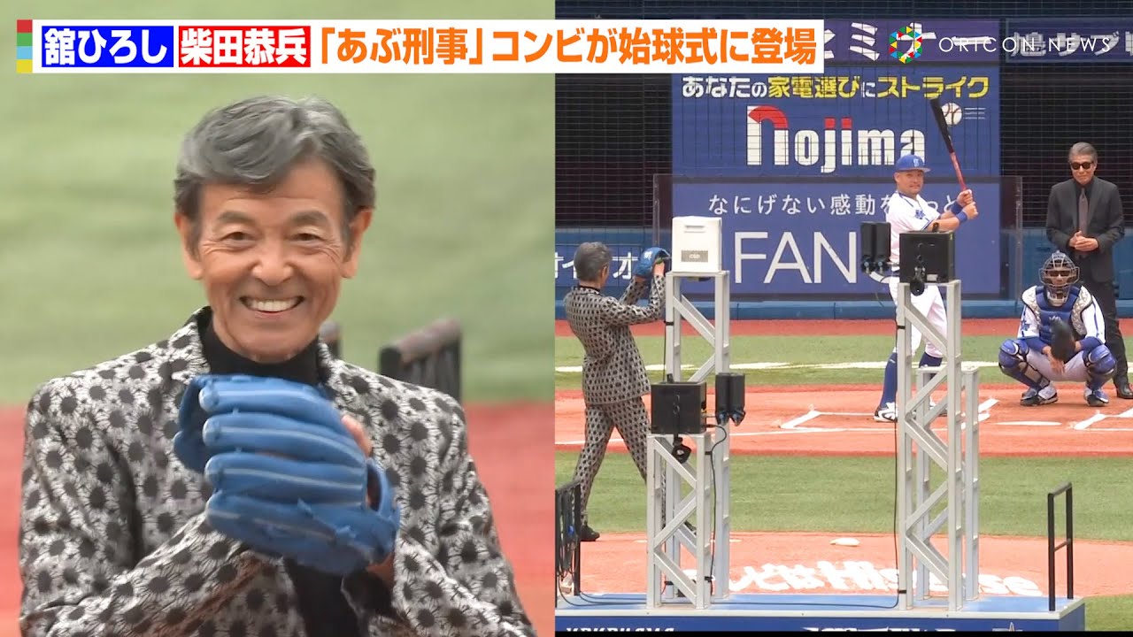 俳優の舘ひろし(74)と柴田恭兵(72)が25日、横浜スタジアムで行われた横浜DeNAベイスターズVS広島東洋カープのセレモニアルピッチを行った。