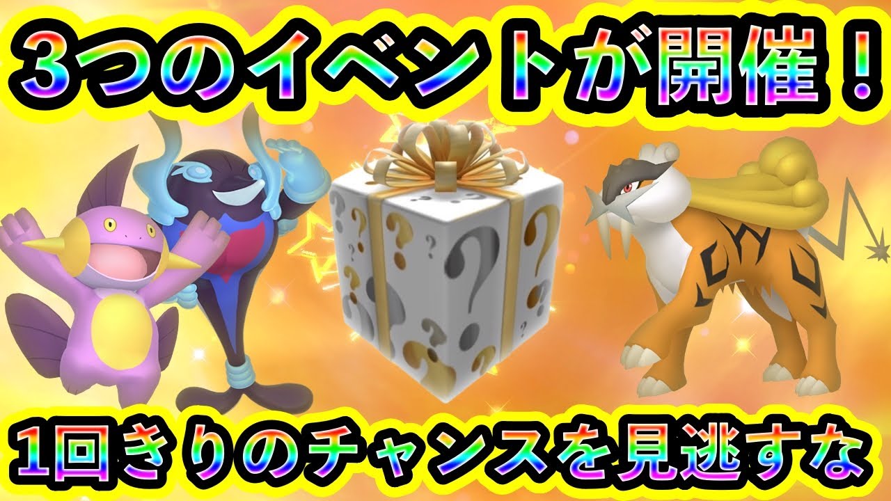 はいどうさんこんにちです今回もですね ポケモンスカレッタバっやっていきたいと 思いますさあというわけで本日は6月6日 の木曜日ということでいよいよ明日の 金曜日から3つの新たなイベントが同時に 開催されるということが決定しております ので今回はそれは3つ全てのイベント詳細 をね皆さんに紹介していきたいと思います ですのですれずに全て参加しておきたいと いう方は是非今回の動画を最後までご覧 くださいそしてさらにですね色違い伝説を ゲットできる新たな注目イベントの情報が ありますのでそちらについてもね後半で 説明していきたいと思いますので興味の ある方はね是非最後までご覧くださいと いうわけで早速ですねまずは明日から開催 されるイベント1つ目からね詳細の方皆 さんで一緒に見ていきましょう かはいまずははこちらになります水タイプ のポケモン大量発生イベントですねはい こちらいよいよ明日6月7日の朝9時から 6月10日の朝8時59分までの3日間 限定で開催されます今回の登場ポケモンは こちらナルカハボタッツの3種類の ポケモンが登場しておりましてま体量発生 イベントということでねつまり色違いを 厳選できるイベントということにになって おりますしさらには今回のこのイベントで は夜型の証というね通常は1%しか入手 確率がないレアな証がなんとね5倍の5% でえ厳選できるというような仕様になって おりますですので是非今回はねこの3体 最終進化系であるこの3体の色違いプラス 証持ちをしっかりとね厳選していただき たいと思いますイルカマンそして ルンパッパとキングドラですねまどれもね かっこいい色違いになっておりますので もし厳選する際はねできるだけおしぼを 使って捕まえていただきたいと思いますま もしねいいおシャボを持っていない方は 少なくともプレミアボールとかゴージャス ボールぐらいでは捕まえていただきたいと は思いますねそして今回はマップによって 出現するポケモンの種類が変わってきます となっておりますパルデは地方ではナミル かだけが大量発生するとそして北上の里で はハボのみが大量発生そしてブルーベリー が園ではタッツのみが大量発生するといっ た感じになってるんですけどもこの ブルーベリー学園限定で大量発生する タッツですねこちらの落とし物素材がなん と道具プリンターで45%というね高還元 率を誇っておりますので是非ね道具 プリンター設定とかでおしぼとかあとは 換金アイテムとかねいっぱい集めるよと いう方は今回のイベントに参加してタツの 落とし物をですねま999個カストするま まで集めていただきたいと思いますま こちらね1回切りの開催ですので是非皆 さん見逃さずに参加しましょうさあという ことで以上ね明日1つ目の開催イベントと して大量発生のイベントについて紹介して きたわけですけどもあと2つですね開催さ れるイベントがありますので今からは2つ 目のイベントですね明日から開催される新 イベントについて詳細をね今から一緒に見 ていきましょうかはい2つ目はこちらです ね最強ラグラージレイドイベントになり ますこちら一度ですね5月31日から6月 3日までの間開催されていたんですけども 今回はそれが終了した後の2回目の開催 期間となっておりますで具体的な開催期間 が明日ですね6月の7日から6月の10日 まで3日間限定となりますそして今回が2 回目の開催ということで最後のチャンスと なっておりますのでまだ参加できていな かったという方や周回をねまだ十分にでき ていなかったという方は必ずね明日からの 最強ラグラージレイドイベントに参加して くださいでもう一度概要説明しておくと 今回最強ラグラージはドグテラスタイプと なっていてえ技構成はこちらこんな感じに なっておりますまこれら6つの技のうち3 つがね水タイプの技というところとあとは 物理と特殊両頭で攻めてくるというところ にね注意していただきたいと思います方で ですねしっかり秘伝スパイスを落として くれますのでこちら周回する価値は大いに あるという風に思いますでもしねソロで 楽楽に安定して周回したいという方は すでにこのチャンネルでソ攻略動画載して ありますのでもしまだ見ていない方やこれ からどんどん周回したいという方は概要欄 にリングを貼っておきますのでそちら参考 にしてみてくださいさあというわけで以上 ね2つ目のイベント紹介してきたわけです けども残り1つですね3つ目のイベとも 明日開催されるということになっており ますので続いて3つ目のイベントの情報 ですね詳細を今から一緒に見ていき ましょうはいそれがこちらですねハピナス レイドイベントになりますこちらも明日の 6月7日から6月10日までの3日間限定 の1回きりの開催という風になっており ますまこちらね久々の開催ですねもう最近 はね最強レイドの2回目の開催期間の時に このハピナスレイドが必ず開催されると いうような傾向が続いてますけどもま今回 もね毎回と同じくハピ