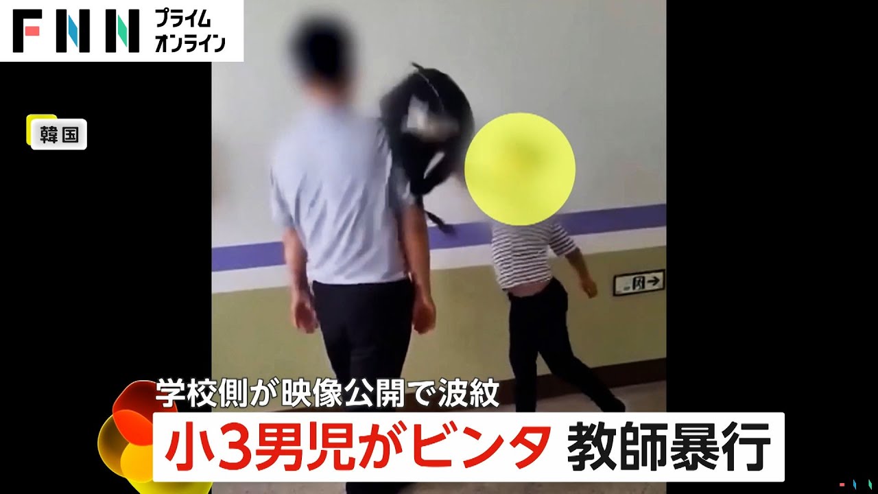 小学校の廊下を走り回り手に持った鞄で 男性教師を殴る男子 児童 さらに廊下にあった傘を教室の窓に 叩きつけまし た韓国の小学校で3年の男子児童が無断 相対を注意する教師に悪口を浴びせ暴行を 加えた際の様子です 事態を重く見た学校側が映像の公開に 踏み切る異例の事態となってい ますごめんなさいと謝ったら許してあげる からあなたが友達に悪口を言って先生を 殴った でしょ分かったからちょっと静かにし てお母さん言いつけます から男子児童は授業中にクラスメートの 悪口を言うなどの騒ぎを その後無断で相対をしようとする男子児童 の前に共闘が現れる とその方を何度も叩き ます今叩いたのかビタしたよお前は刑務所 へ入れ刑務所へ 行け問題行動はとまりませ ん唾を吐い た共闘の腕に噛みついた上顔に唾を吐き かけたの です学校に呼ばれた母親は学校の管理責任 を訴え不当な指導や自動虐待にあたると 主張対する学校側は男子児童を10日間の 出席停止処分としました 韓国のSNSでは保護者に対する避難の声 が紛失してい ますこんな子供は退学させる べき子供をこんな風に育てた親の児童虐待 だ学校関係者は教員への暴行が深刻な犯罪 であることを社会的に認識するよう親を 告発し厳重に処罰すべきだ主張しています